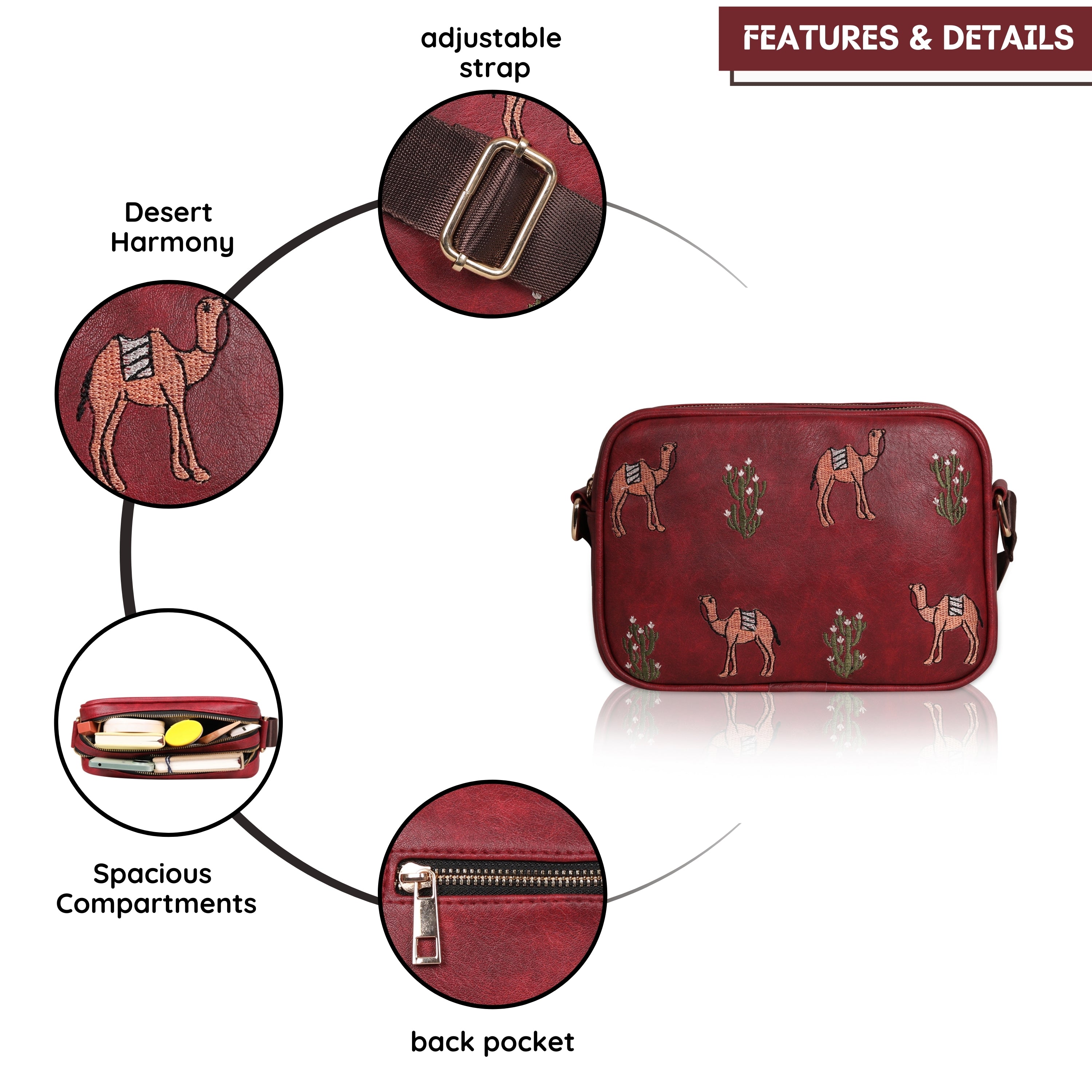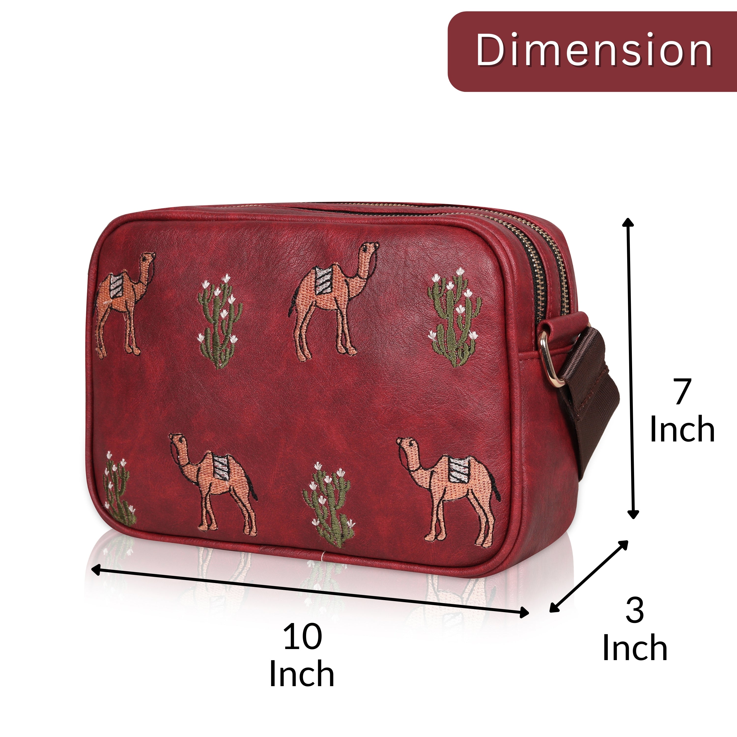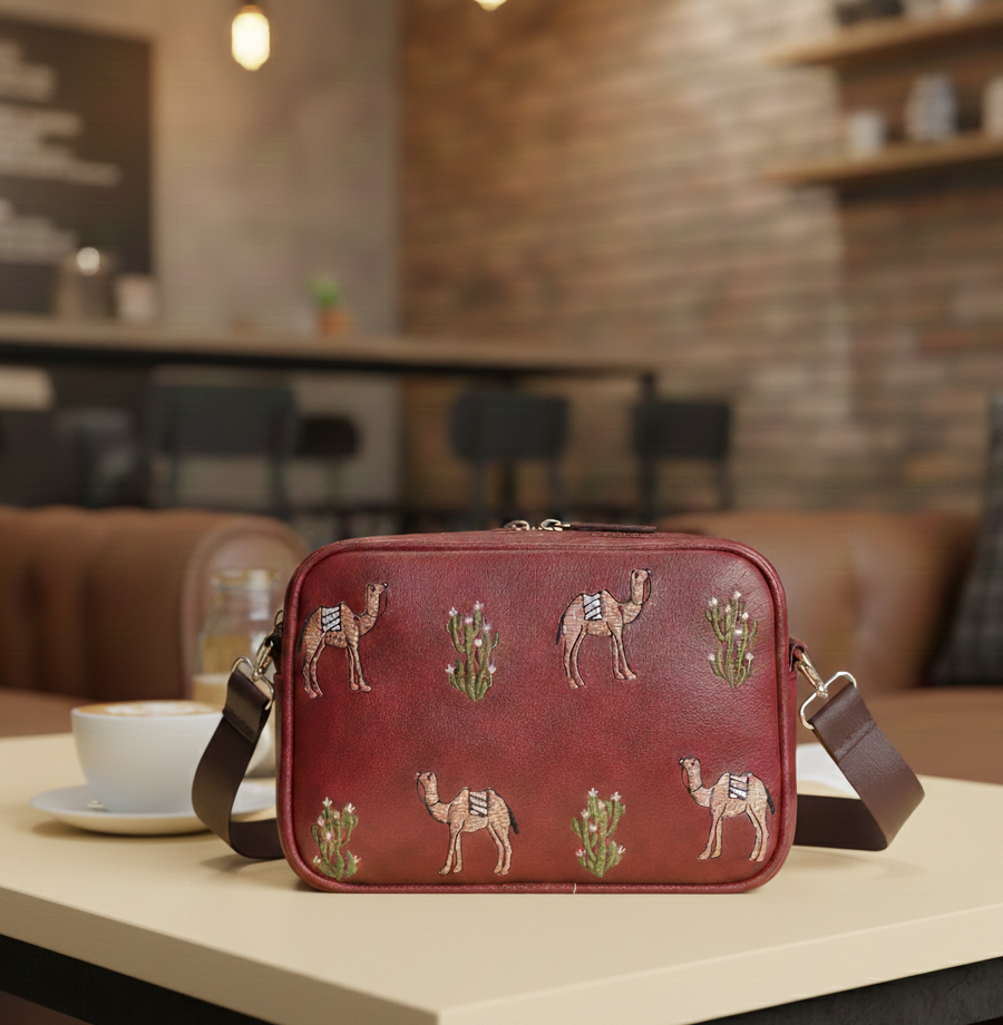 Step out in style with the FusionKaari Desert Harmony Trunk Sling Bag, a perfect blend of tradition and modern elegance. Featuring a striking camel embroidery work, this rectangular sling bag brings a touch of desert-inspired artistry to your everyday look. Designed for women who love effortless fashion with a hint of cultural charm, it’s the ideal companion for work, travel, and casual outings.