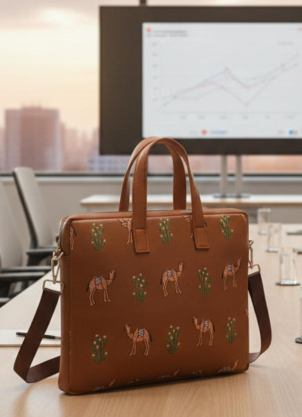 Stay stylish and organized on the go with Fusionkaari's Desert Harmony Laptop Bag. Perfect for the modern professional or student, this bag combines fashion and functionality seamlessly. The padded interior provides ultimate protection for your laptop, while the camel print exterior adds a touch of sophistication to your look. Whether you're commuting to work or heading to class, this versatile bag keeps you prepared and on-trend.