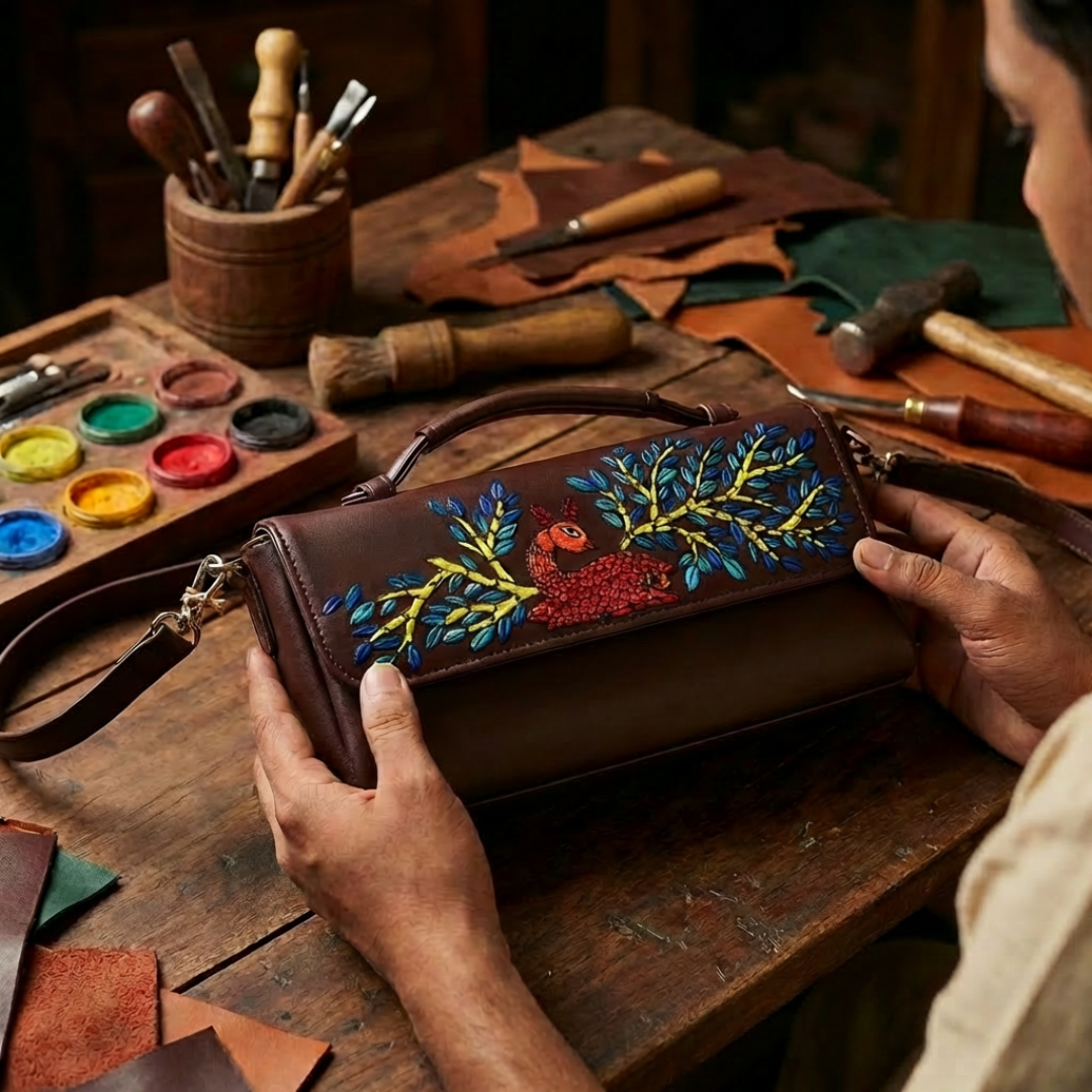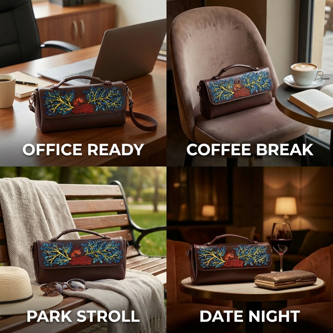 Embrace the spirit of tradition with the FusionKaari Hand-painted Gond Reverie Sling — where every brushstroke tells a story, and every carry makes an artistic statement.